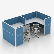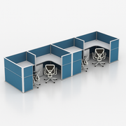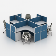 The AuraWerk SoloArc L-Desk Cubicle is designed for professionals who demand quiet focus with a compact footprint. This high-end single workstation features a curved L-shaped work surface with a cable grommet, acoustic blue fabric panels for sound dampening, and a lockable pedestal. A satin-white aluminum frame and commercial-grade laminate deliver durability and a refined, modern aesthetic.