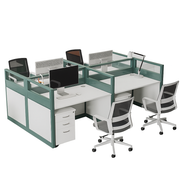The Verdanta AeroGrid Quad Cubicle Workstation is a premium 4-person desk cluster crafted for modern teams. Built with a powder-coated aluminum frame, tempered glass upper partitions, and commercial-grade white laminate tops, it blends privacy with open collaboration. Integrated cable routing, grommets, and pedestal storage keep surfaces clutter-free while the airy green frame adds a refined studio aesthetic to any office.